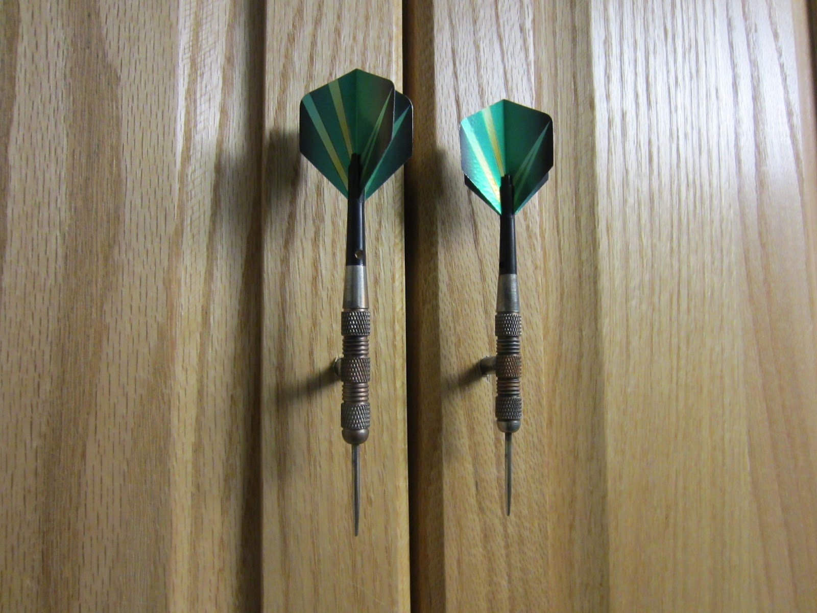and just in case you cant see the details from far away, check out these way cool door pulls - those are actual darts that were welded onto threaded posts to attach them to the doors. love them!